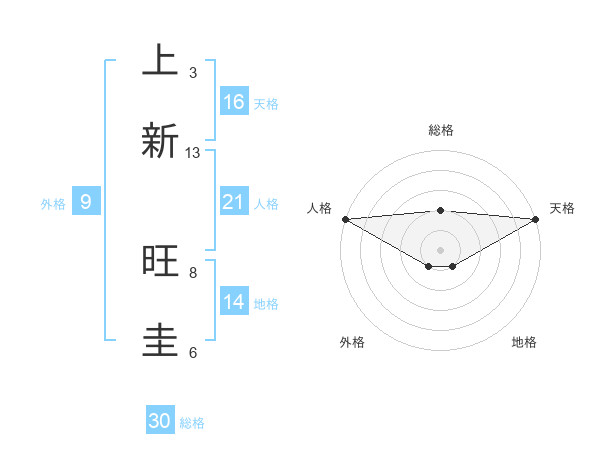 上新 旺圭さんの総格は30画の2点!