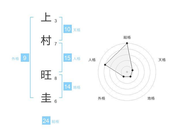 上村 旺圭さんを姓名の画数から五運を鑑定