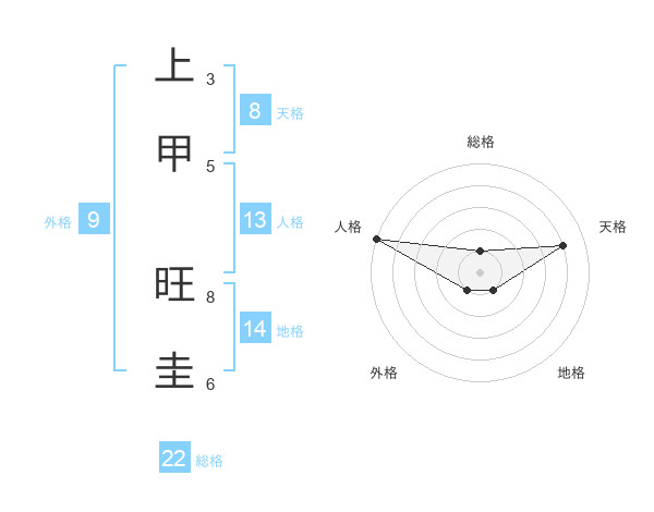 上甲 旺圭さんを姓名の画数から五運を鑑定