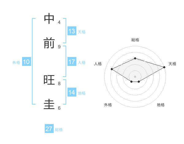 中前 旺圭さんの天格は13画の5点!