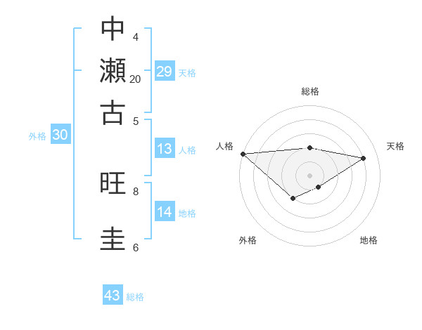 中瀬古 旺圭さんの総格は43画の2点!