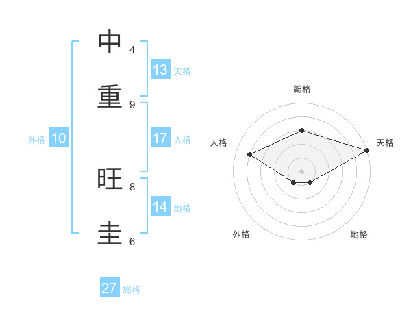 中重 旺圭さんの天格は13画の5点!