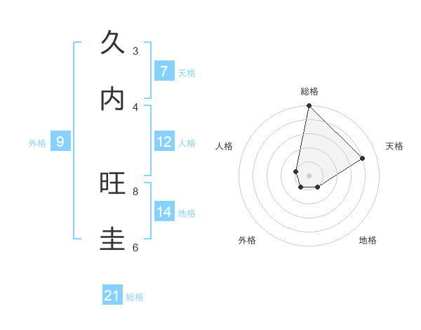 久内 旺圭さんの総格は21画の5点!