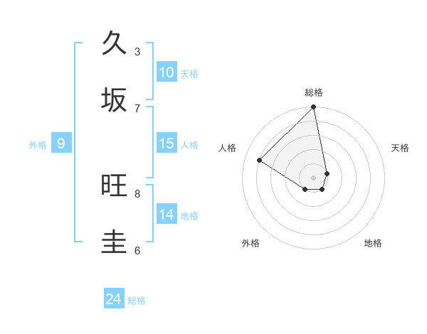 久坂 旺圭さんの総格は24画の5点!