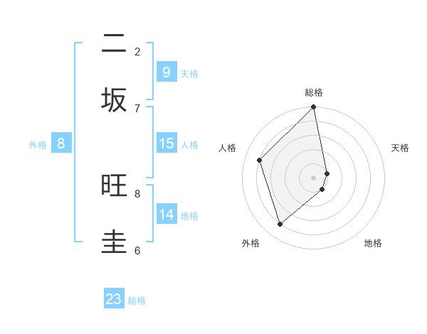 二坂 旺圭さんを姓名の画数から五運を鑑定