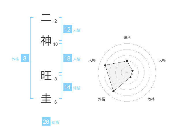 二神 旺圭さんを姓名の画数から五運を鑑定