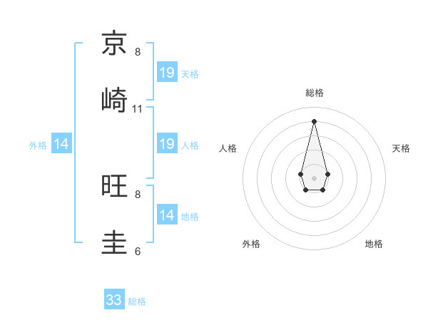京崎 旺圭さんの総格は33画の4点!