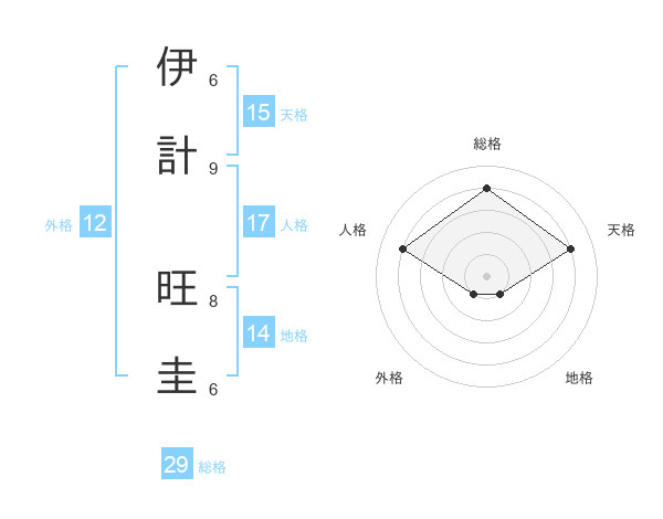 伊計 旺圭さんの総格は29画の4点!