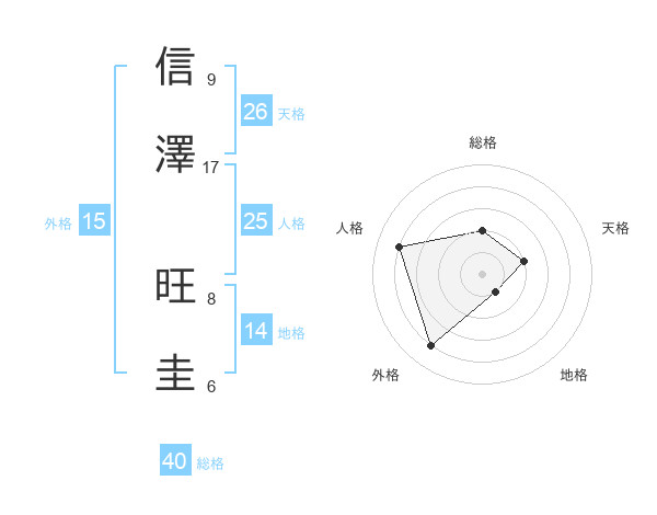 信澤 旺圭さんの外格は15画の4点!