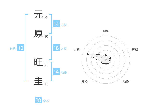 元原 旺圭さんの総格は28画の1点!