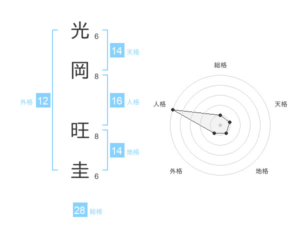 光岡 旺圭さんを姓名の画数から五運を鑑定