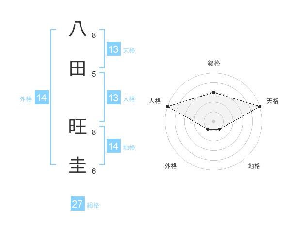 八田 旺圭さんの総格は27画の3点!