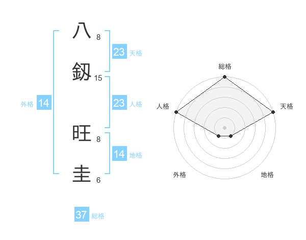 八釼 旺圭さんの総格は37画の5点!