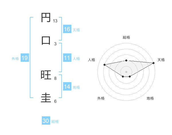 円口 旺圭さんの天格は16画の5点!