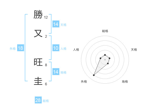 勝又 旺圭さんを姓名の画数から五運を鑑定