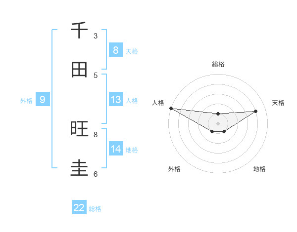 千田 旺圭さんの総格は22画の1点!