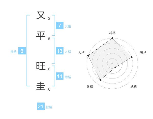 又平 旺圭さんの総格は21画の5点!