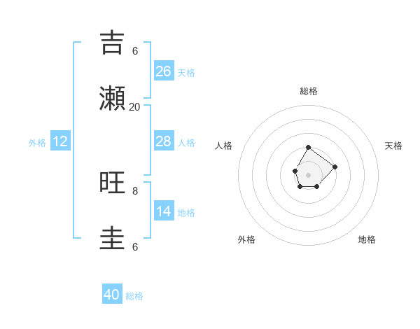 吉瀬 旺圭さんを姓名の画数から五運を鑑定