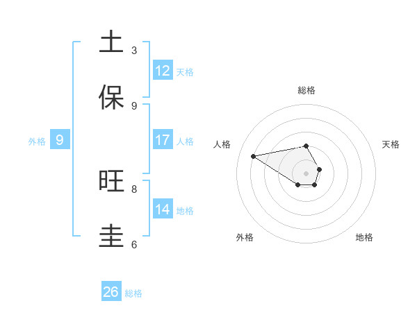 土保 旺圭さんの総格は26画の2点!