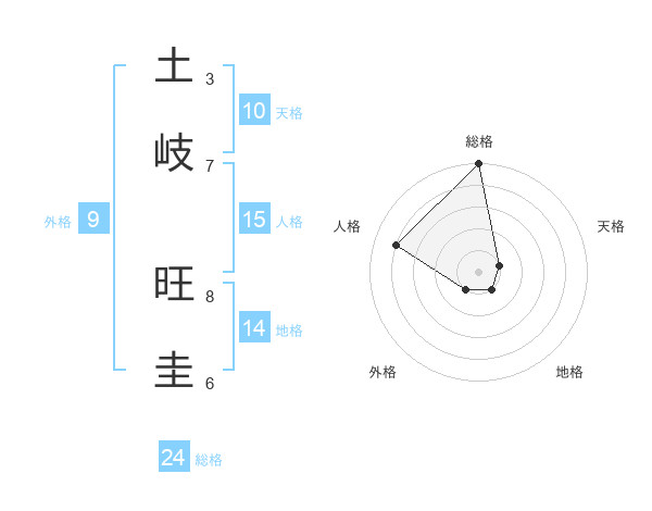 土岐 旺圭さんを姓名の画数から五運を鑑定