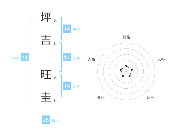 坪吉 旺圭さんの天格は14画の1点!