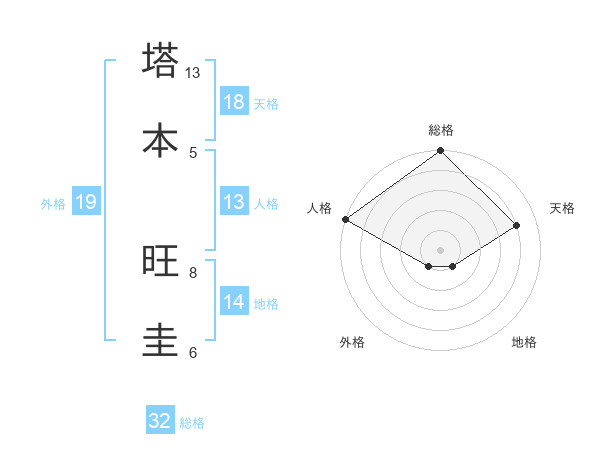 塔本 旺圭さんの総格は32画の5点!