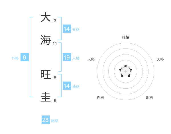 大海 旺圭さんを姓名の画数から五運を鑑定