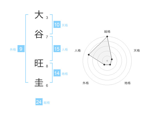 大谷 旺圭さんを姓名の画数から五運を鑑定