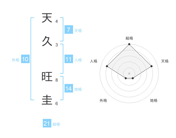 天久 旺圭さんの総格は21画の5点!