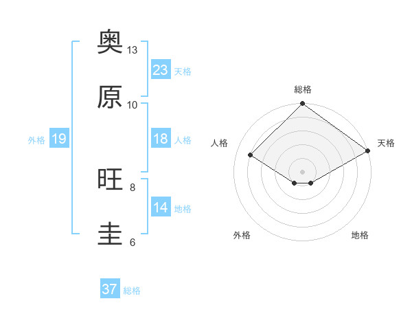 奥原 旺圭さんを姓名の画数から五運を鑑定