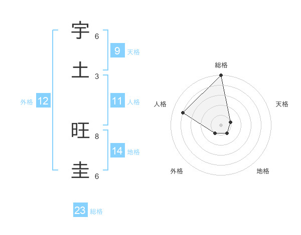 宇土 旺圭さんの総格は23画の5点!