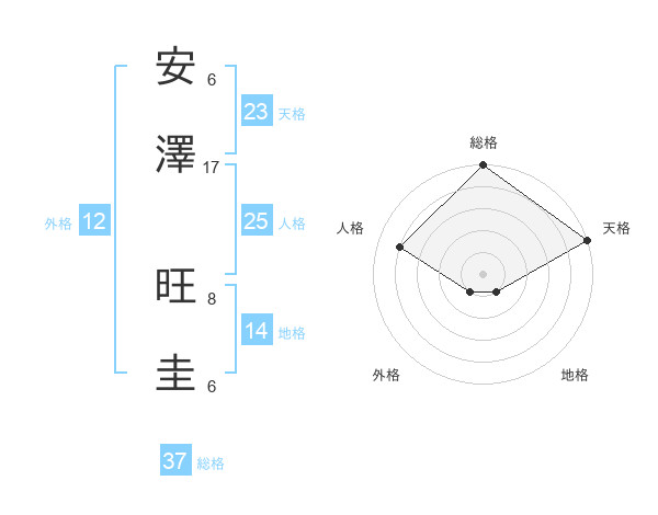 安澤 旺圭さんの総格は37画の5点!