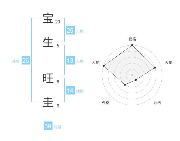 宝生 旺圭さんの総格は39画の5点!