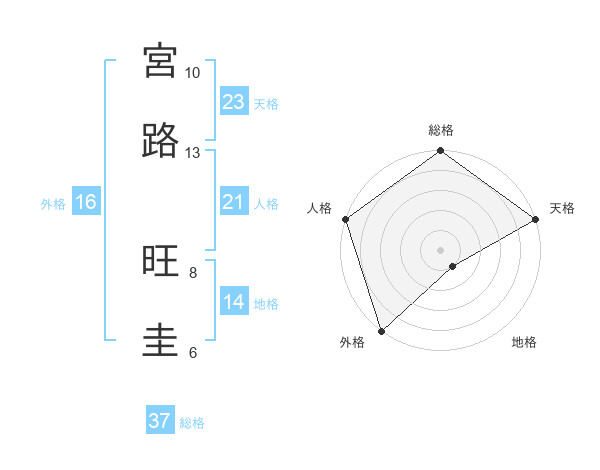 宮路 旺圭さんの総格は37画の5点!