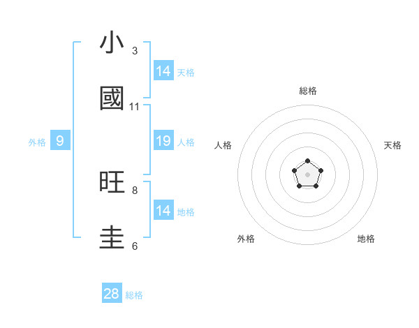 小國 旺圭さんを姓名の画数から五運を鑑定