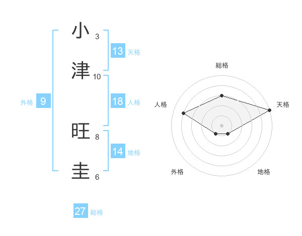 小津 旺圭さんの総格は27画の3点!