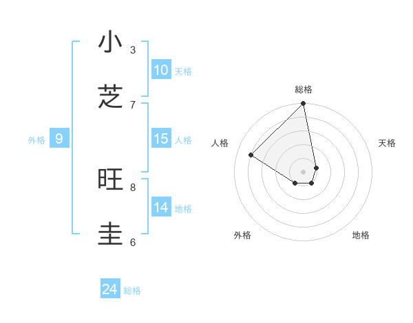 小芝 旺圭さんの総格は24画の5点!