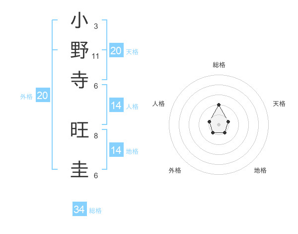 小野寺 旺圭さんの総格は34画の2点!