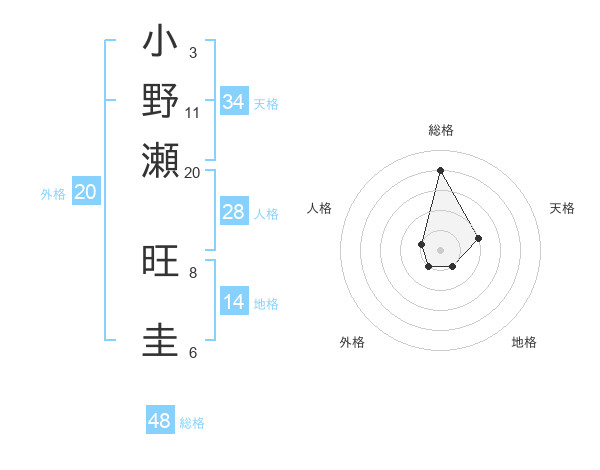 小野瀬 旺圭さんを姓名の画数から五運を鑑定