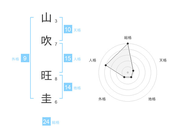 山吹 旺圭さんの総格は24画の5点!
