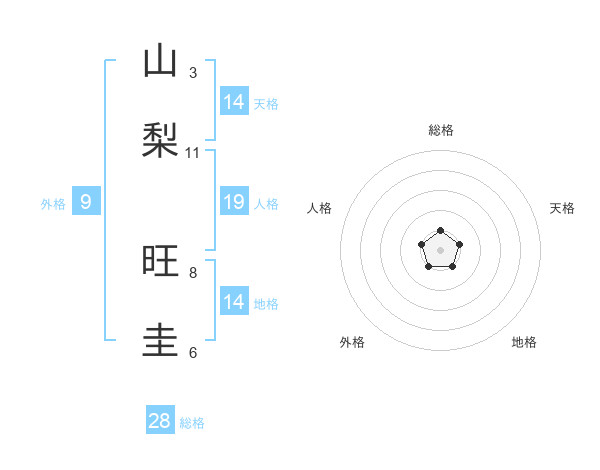 山梨 旺圭さんを姓名の画数から五運を鑑定