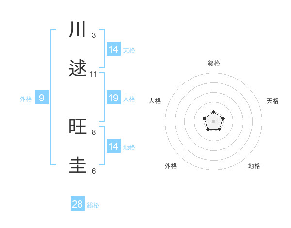 川逑 旺圭さんを姓名の画数から五運を鑑定