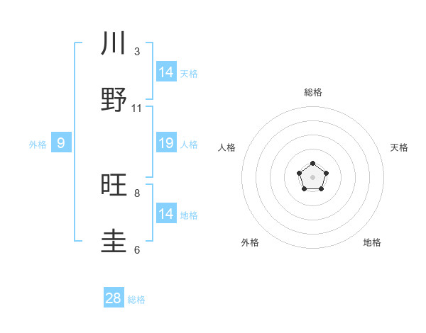 川野 旺圭さんを姓名の画数から五運を鑑定