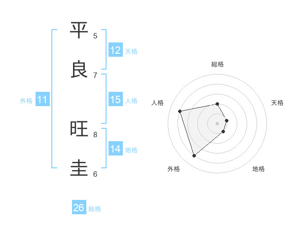 平良 旺圭さんの総格は26画の2点!