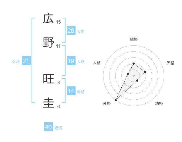 広野 旺圭さんの外格は21画の5点!