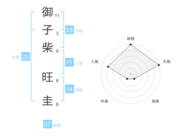御子柴 旺圭さんを姓名の画数から五運を鑑定