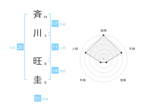 斉川 旺圭さんの総格は31画の5点!