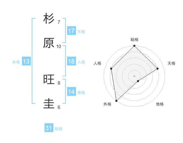 杉原 旺圭さんを姓名の画数から五運を鑑定