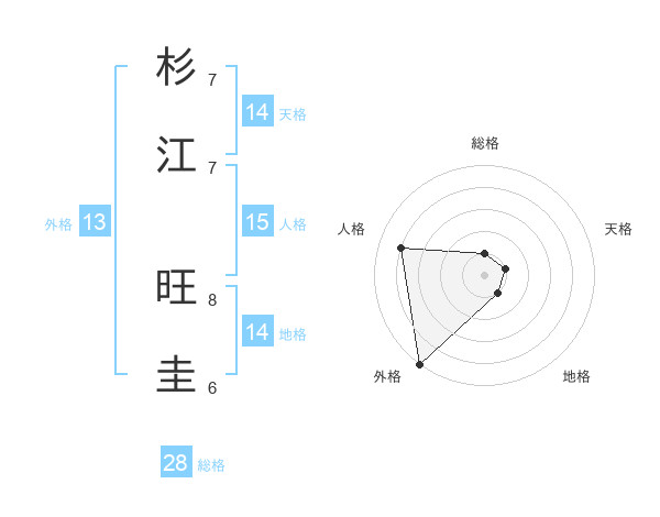杉江 旺圭さんの総格は28画の1点!