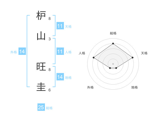 枦山 旺圭さんの総格は25画の4点!
